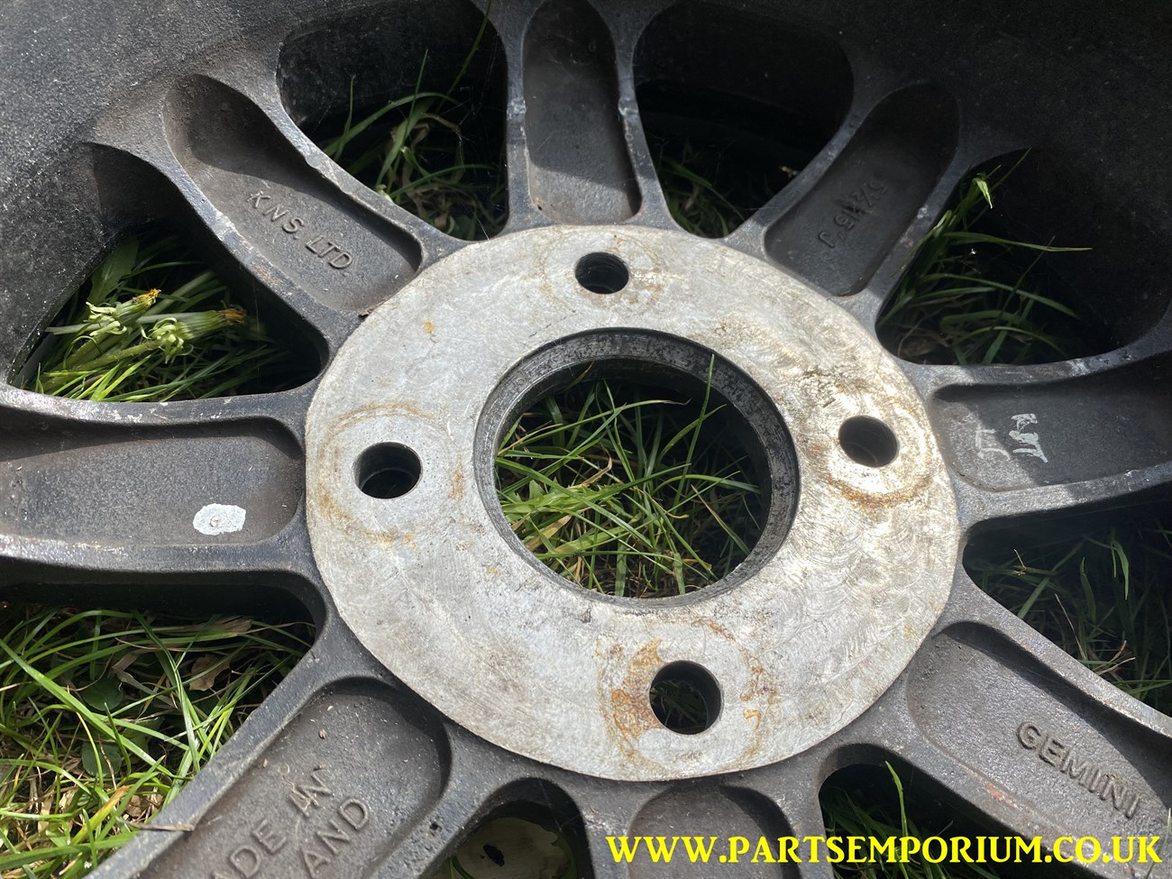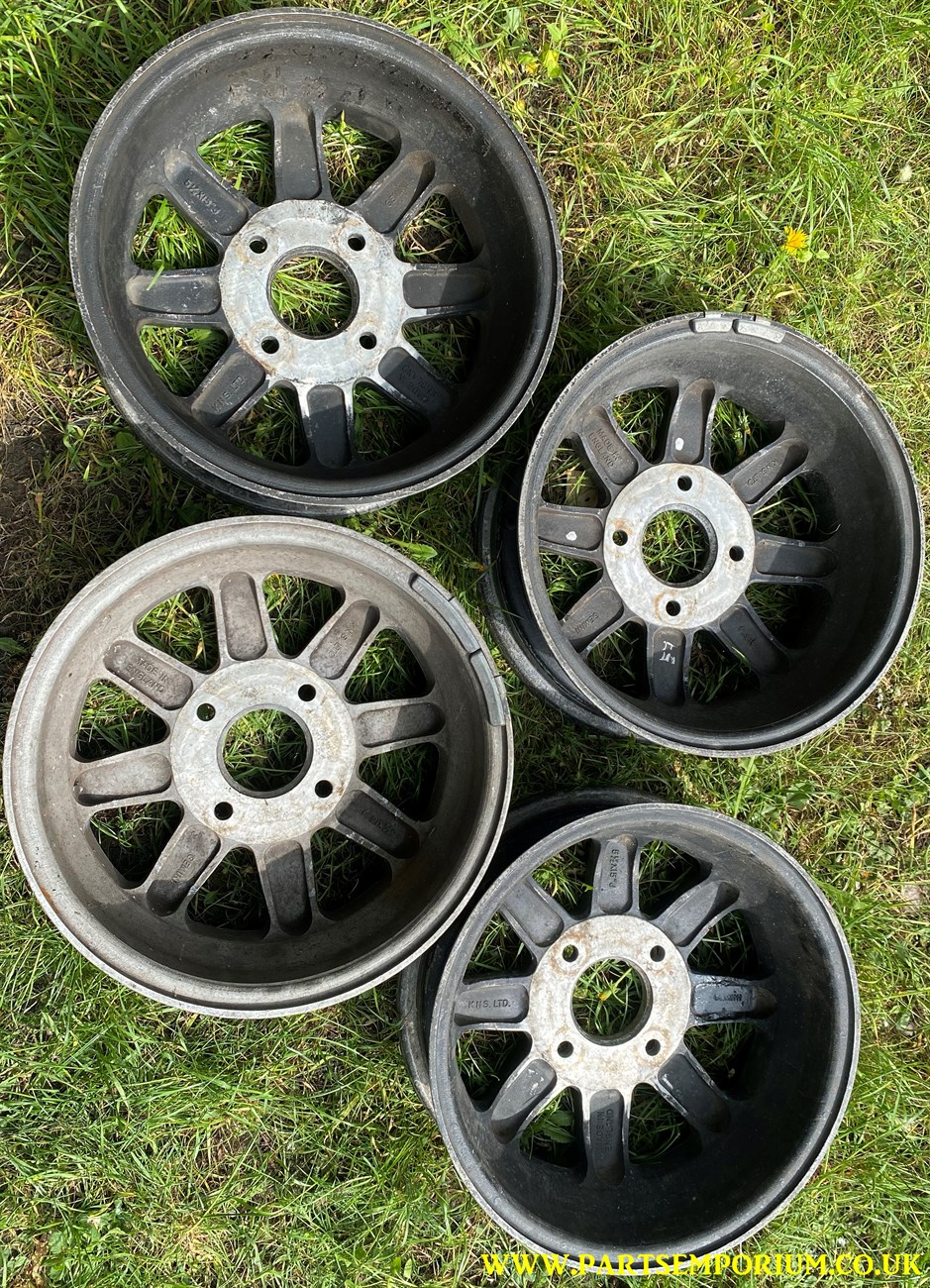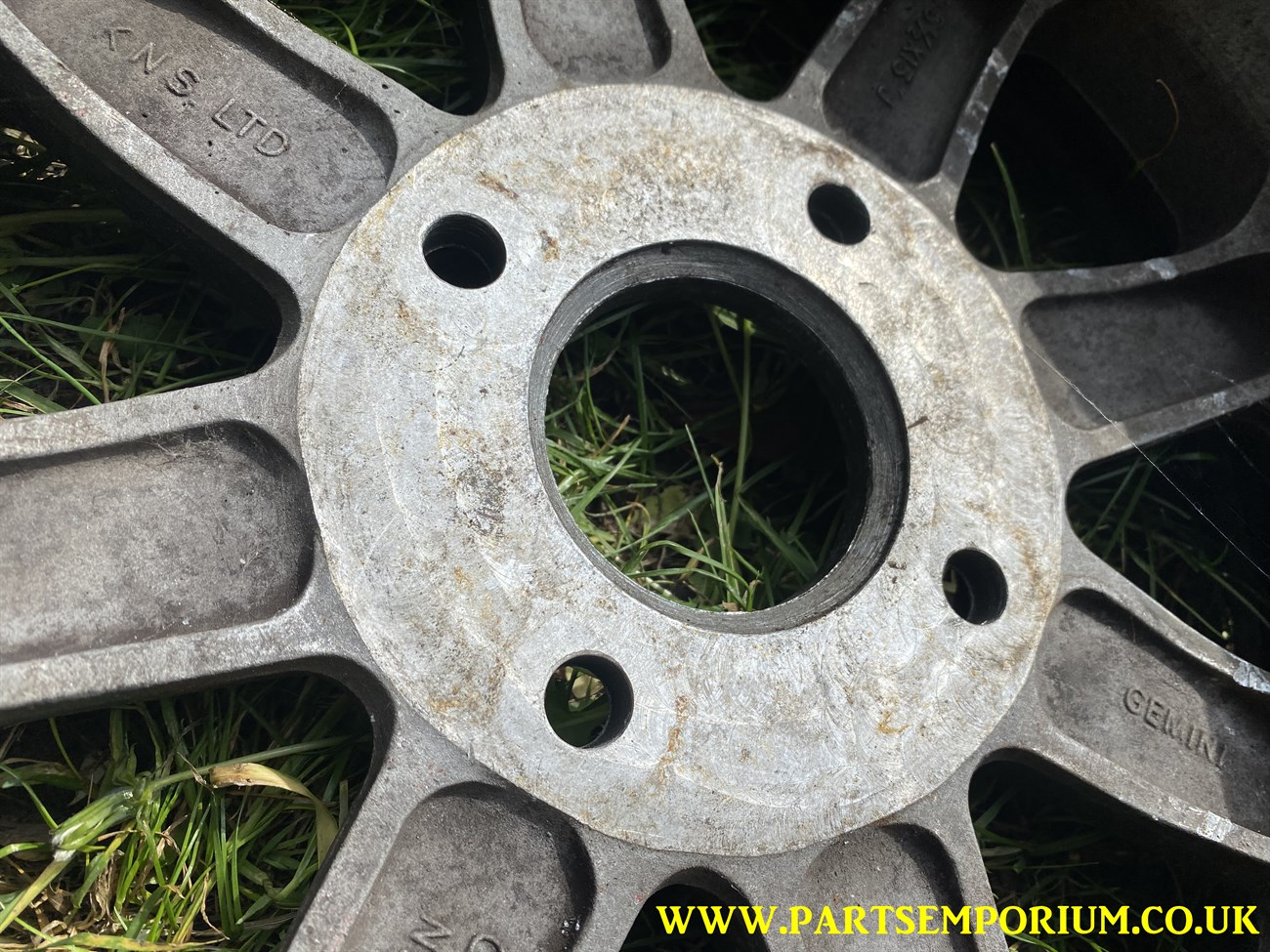 Gemini KNS Beetle Wheels – Set 4 – Very cool and retro – However some one has ground back the centres to adjust the offset.. and they have done it badly (See pics) … so they will need to be given to a machine shop to do a proper job.. these do not presently run true!