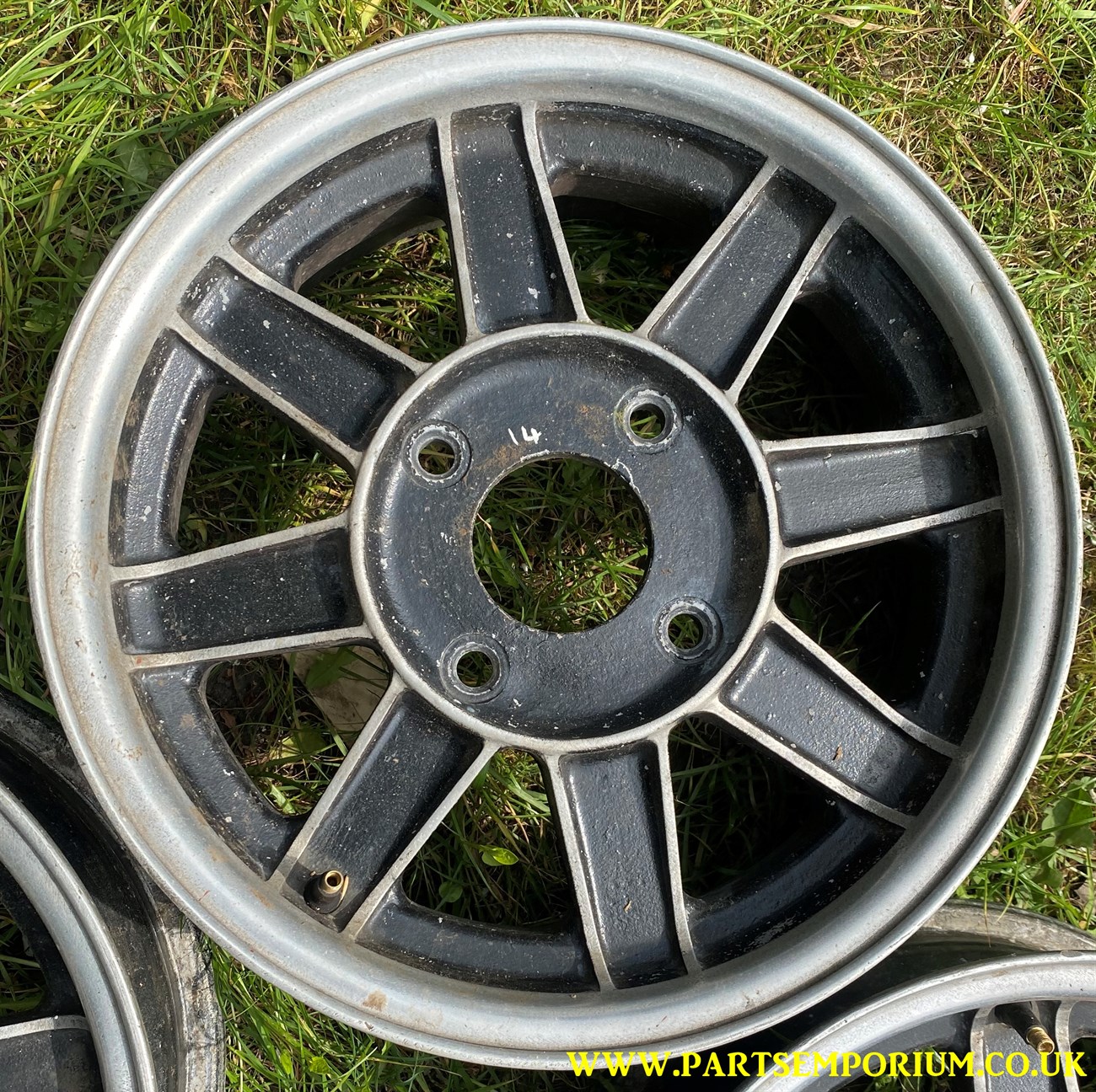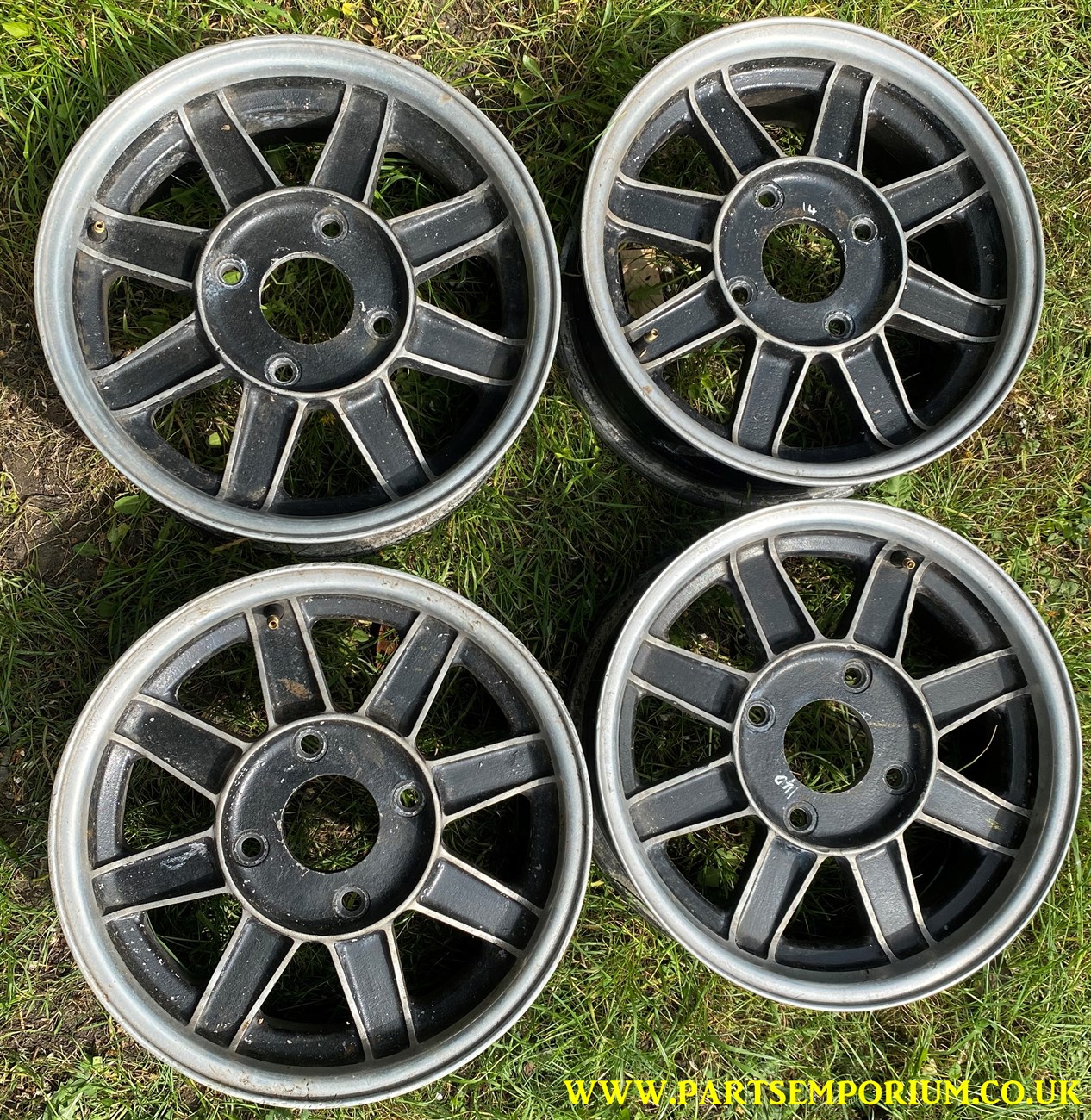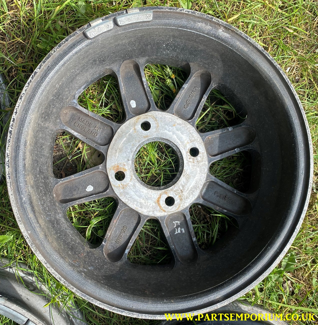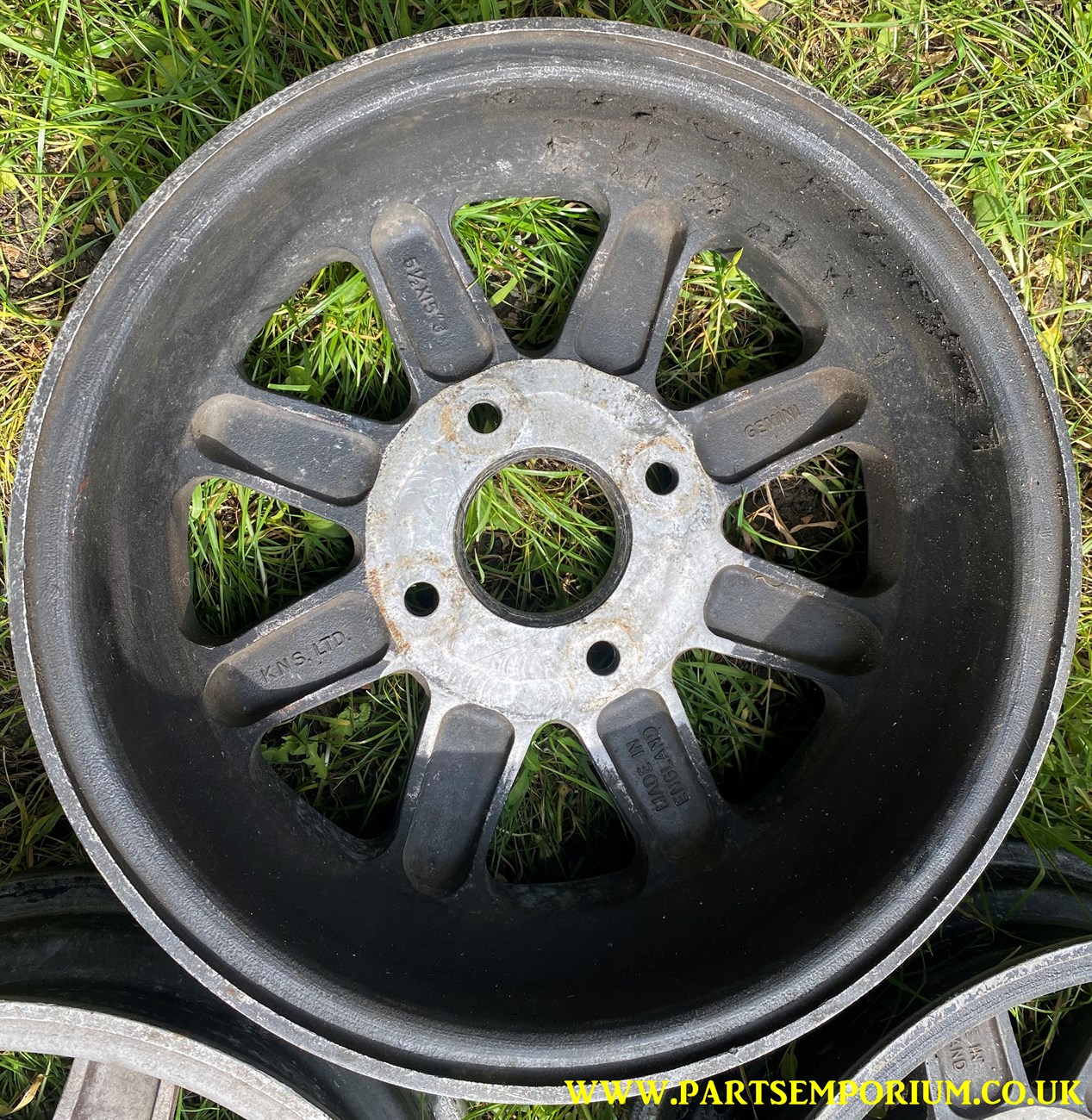 Gemini KNS Beetle Wheels – Set 4 – Very cool and retro – However some one has ground back the centres to adjust the offset.. and they have done it badly (See pics) … so they will need to be given to a machine shop to do a proper job.. these do not presently run true!
